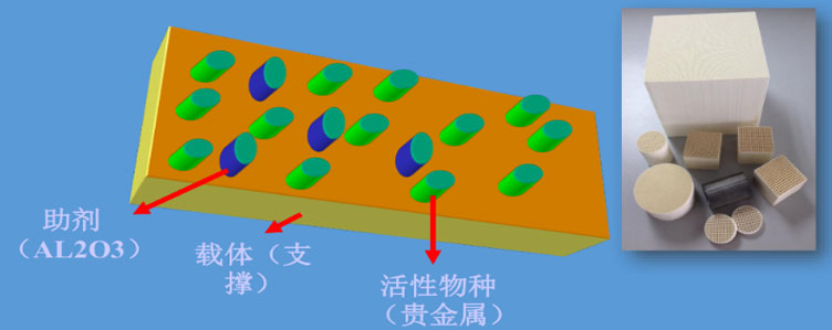 采用当今先进的贵金属钯、铂浸渍的蜂窝状陶瓷载体催化剂,比表面积大;